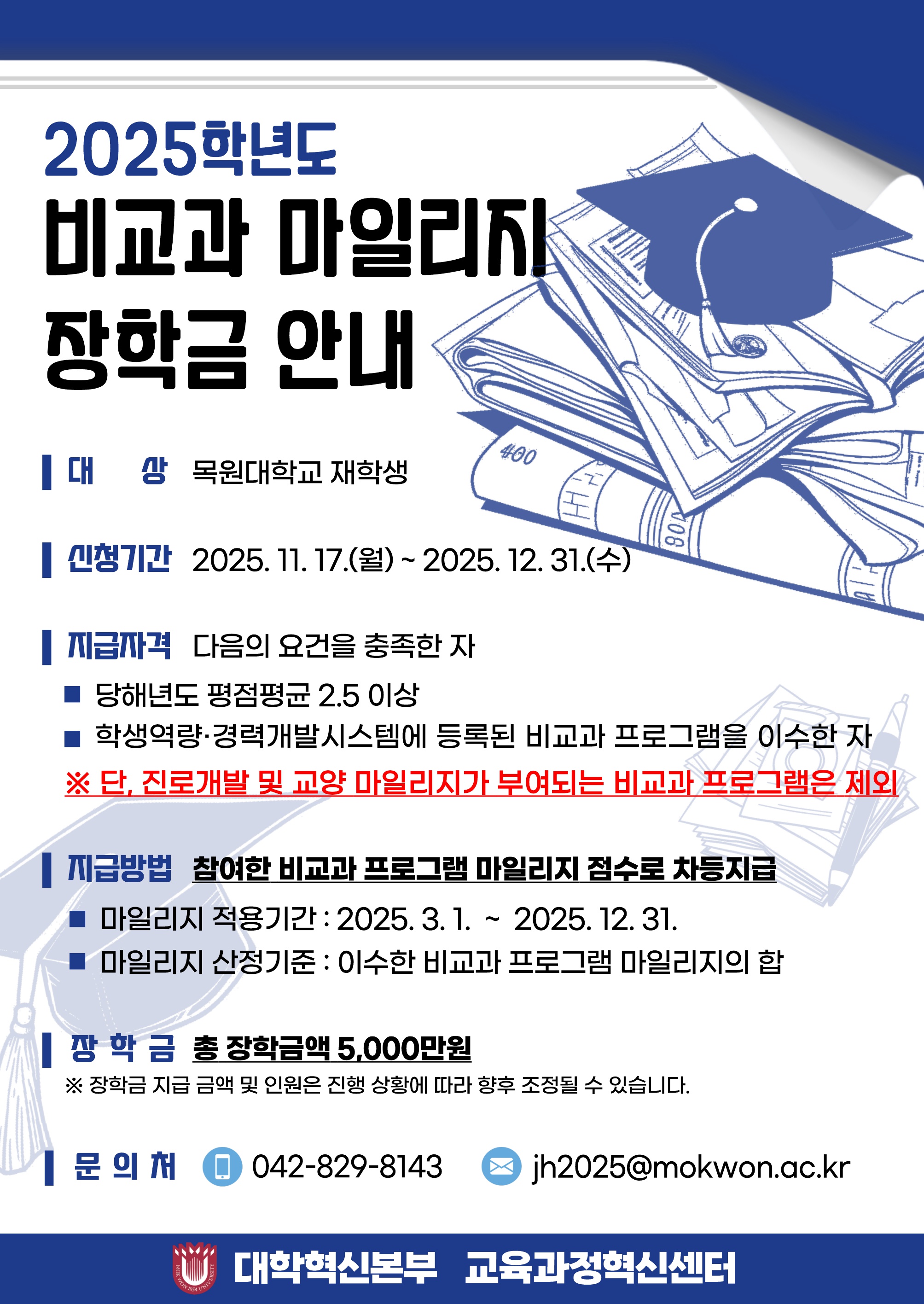 비교과 마일리지 관련하여 궁금한 사항은 문의처에 메일 또는 연락주시기 바랍니다.